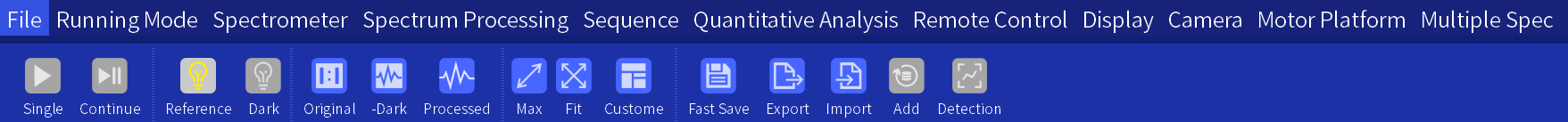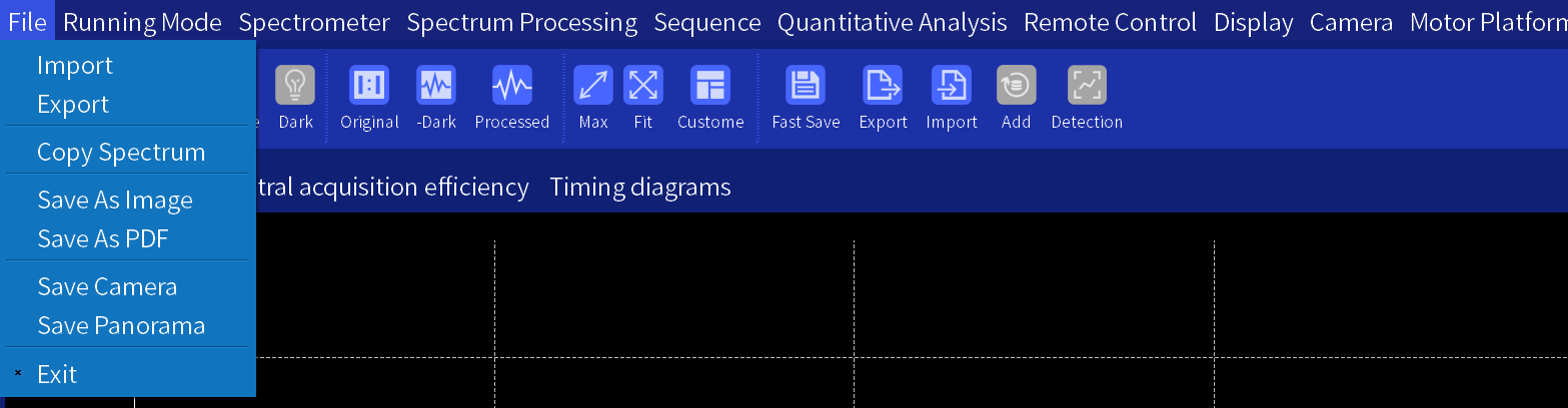 • Supports importing spectral data, exporting spectral data, copying spectral data, saving spectra as images, and saving spectra as PDFs