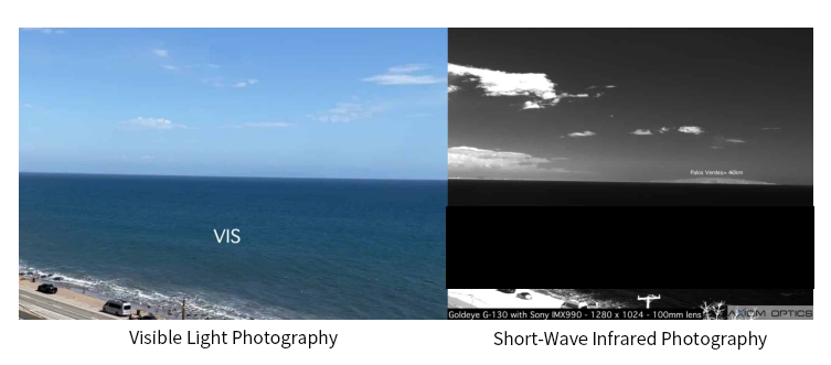 Short-wave infrared imaging technology can easily capture short-wave infrared light that penetrates the sky. Compared with visible light imaging, images taken by short-wave infrared cameras exhibit higher visibility, allowing observation of farther and clearer target information.