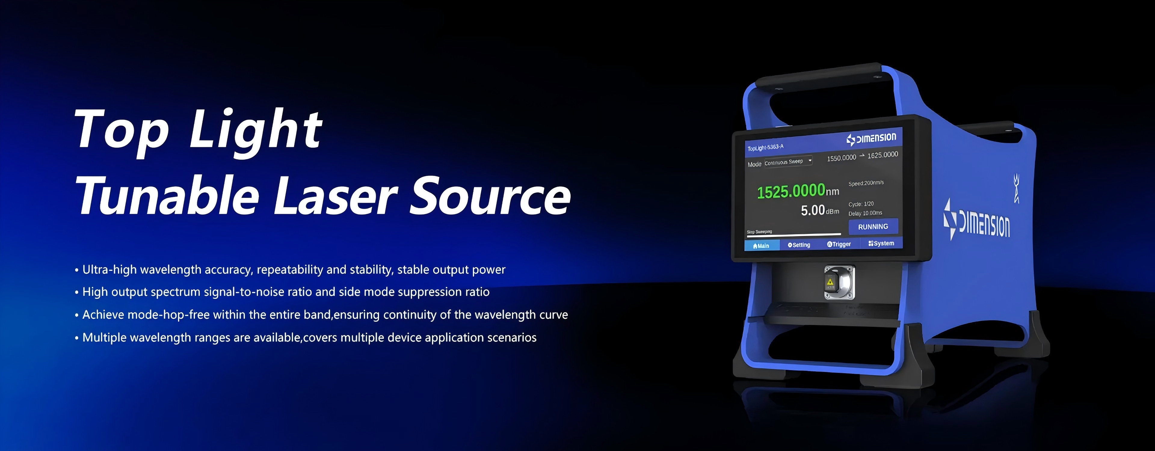 Dimension Labs' expertise in opto-mechatronic integration provides robust support for mode control in tunable light sources. Through precision control and advanced algorithms, TopLight ensures dominant output of the primary mode wavelength while maintaining ultra-high scanning speeds and wavelength accuracy. This allows seamless testing without the need for wavelength calibration components during scans.